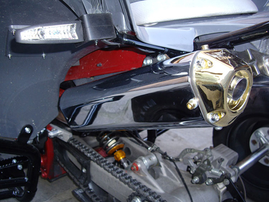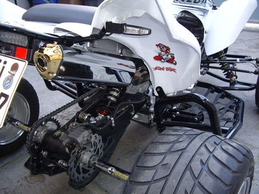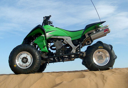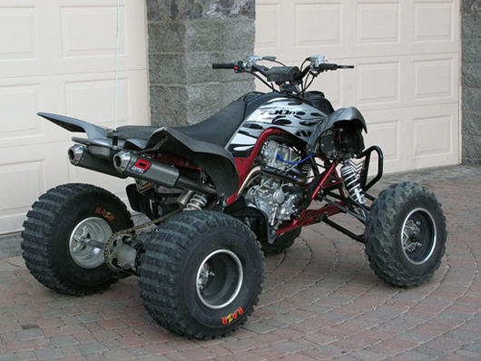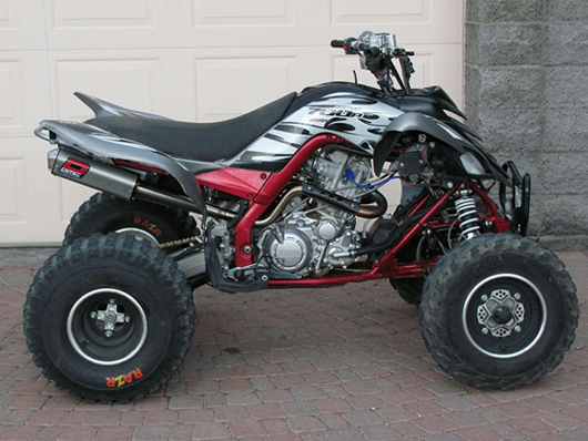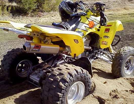 These shots came from Thorsten in Germany. All we can say is "WOW!" Since ATV's are street legal in some European countries, customizing your Raptor with technolgy and style happens frequently. The attention to detail on Thorsten's creation is amazing. Great work and a perfect choice of chrome and gold plating! ![]() ![]() The DMC AFTERBURNER doesn't mind getting dirty !!! The pipe makes the Z400 rev-up through the nastiest terrain you throw at it. The DMC AFTERBURNER COMP is not a wimpy pipe that just makes noise and does nothing like other aftermarket pipes, it makes my quad scream and accelerate much faster than the quiet wimpy stock pipe. ![]() This is my 2008 Kawasaki KFX450R. I just installed the DMC twin exhaust and the DMC EFI controller with the K&N air system. I just love the new sound and performance of my bike. It made a huge difference.
